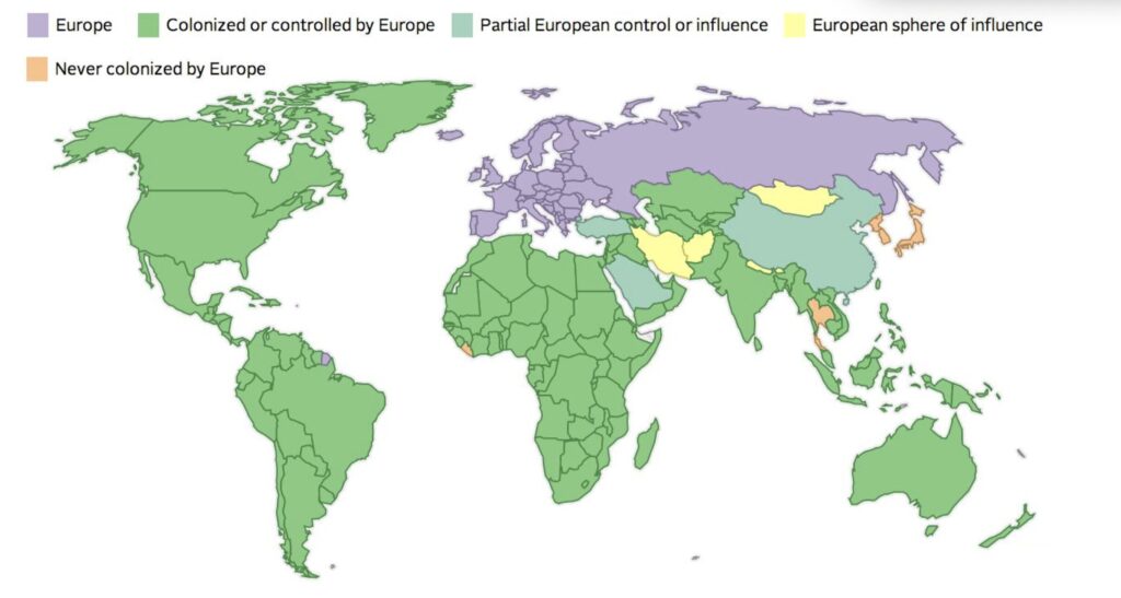 That really shows world domination clearly. And not coincidentally, many people are leaving those colonized parts of the world for because of the difficult living conditions.